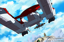 | 第2位はアークエンジェル。『SEED』『SEED DESTINY』と同じ艦が2作続けて、最後まで大活躍した。アーガマも『Z』『ZZ』と登場したのだが、途中でネェル・アーガマに役をゆずっている。全体の印象はホワイトベースに近いのだが、それでいて全体的に曲線で構成されていて、優美に進化したホワイトベースという感じだった。特に後ろの翼がU字型にわん曲して、艦体を包み込むようになっているのが特徴的である。大型艦でありながら、海上のそれほど高くない高度で背面飛行ができる能力がある。 | ![]() |