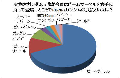 「Q.実物大ガンダム立像が今度はビームサーベルを右手に持って登場!ところでRX-78-2ガンダムの武装といえば?」はビームライフルが1位!【2010年3月22日~2010年3月28日】
