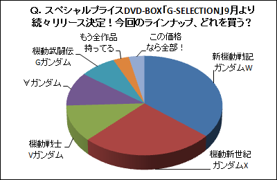 「Q.スペシャルプライスDVD-BOX「G-SELECTION」9月より続々リリース決定!今回のラインナップ、どれを買う?」は新機動戦記ガンダムWが1位!【2010年5月31日~2010年6月6日】
