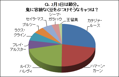 「Q.2月3日は節分。鬼に容赦なく豆をぶつけそうなキャラは?」はカテジナ・ルースが1位!【2011年1月31日~2011年2月6日】