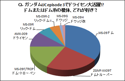 「Q.ガンダムUC episode 3でドライセン大活躍!? ドムまたはドム系の機体、どれが好き?」はMS-09 ドムが1位!【2011年3月7日~2011年3月13日】