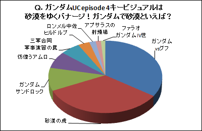 「Q.ガンダムUC episode 4キービジュアルは砂漠をゆくバナージ! ガンダムで砂漠といえば?」はガンダムvsグフが1位!【2011年7月25日~2011年7月31日】