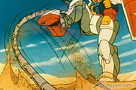第1位はガンダムvsグフが34ポイント強の支持を集めた。開始直後は砂漠の虎に4割ほどリードされていたのだが、途中追い上げ1位となった。ガンダム初の砂漠の戦闘で、しかも人気の高いグフとの対決シーンだ。だが、いわゆる砂の砂漠での対決の時、ガンダムを操縦していたのはセイラさんだった。砂に隠れたグフのヒートロッドがガンダムのつま先を切り裂いた。アムロの放ったガンキャノンの砲撃の爆風を利用して砂の中に身を隠していたのだ。グフがまるまる隠れるほどの砂が舞い上がったのだから、相当な衝撃だったのだろう。 |