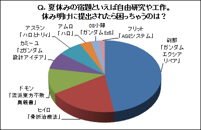 「Q.夏休みの宿題といえば自由研究や工作。休み明けに提出されたら困っちゃうのは?」は刹那「ガンダムエクシアリペア」が1位!!【2011年9月5日~2011年9月11日】