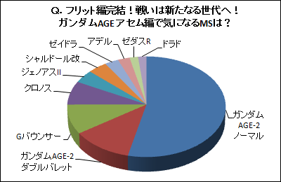 「Q.フリット編完結!戦いは新たなる世代へ!ガンダムAGE アセム編で気になるMSは?」はガンダムAGE-2 ノーマルが1位!【2012年1月23日~2012年1月29日】