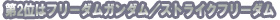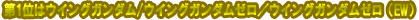 ウイングガンダム/ウイングガンダムゼロ/ウイングガンダムゼロ(EW)(52.15%) フリーダムガンダム/ストライクフリーダム(28.10%) V2ガンダム(13.67%) ガンダムヘブンズソード(2.05%) ストライクルージュ オオトリ装備(1.87%) オオワシ アカツキ(1.09%) アカツキ(1.06%) |