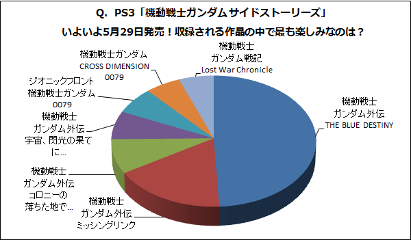 『Q.PS3「機動戦士ガンダム サイドストーリーズ」いよいよ5月29日発売!収録される作品の中で最も楽しみなのは?』は機動戦士ガンダム外伝 THE BLUE DESTINYが1位!【5/26~6/1】