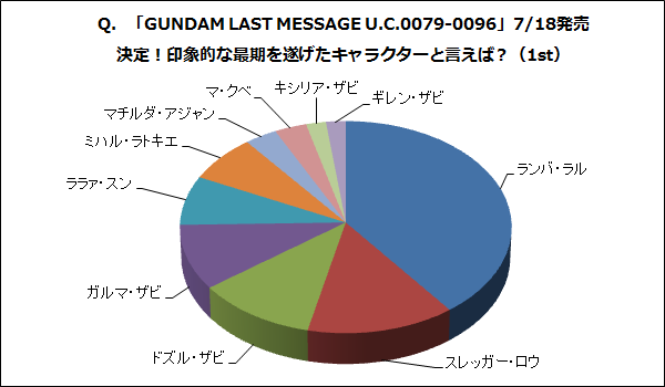 Q.「GUNDAM LAST MESSAGE U.C.0079‐0096」7/18発売決定!印象的な最期を遂げたキャラクターと言えば?(1st)