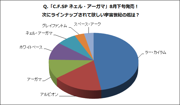 『Q.「C.F.SP ネェル・アーガマ」8月下旬発売!次にラインナップされて欲しい宇宙世紀の艦は?』はラー・カイラムが1位!【8/18~8/24】