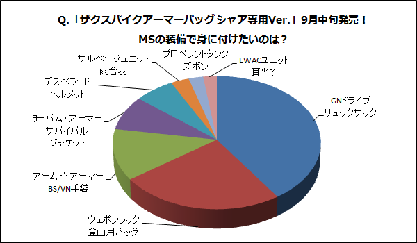 「Q.『ザクスパイクアーマーバッグ シャア専用Ver.』9月中旬発売!MSの装備で身に付けたいのは?」はGNドライヴリュックサックが1位!【9/8~9/14】