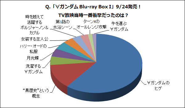 「Q.『∀ガンダム Blu-ray Box I』9/24発売!TV放映当時一番衝撃だったのは?」は∀ガンダムのヒゲが1位!【9/22~9/28】
