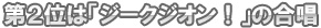 「立てよ国民!ジオンは諸君等の力を欲しているのだ」というギレンの演説の後、流れる大合唱。それが「ジークジオン!」である。虐げられ、踏みにじられてきた人々の不満をこの言葉に集約して、一致団結させることができた。さすが父に「ヒトラーの尻尾」と呼ばれるだけの人である。非難する人もいるかもしれないが、国を1つにし、大きなことを成し遂げるには、人心をまとめる能力が大切である。さあ、みなさんもこの大合唱に参加しようではないか。