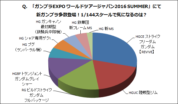 「Q.『ガンプラEXPO ワールドツアージャパン2016 SUMMER』にて新ガンプラ多数登場!1/144スケールで気になるのは?」【8/22~8/28】