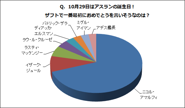 「Q.『機動戦士ガンダムSEED HDリマスター』TOKYO MXにて再放送中!10月29日はアスランの誕生日!ザフトで一番最初におめでとうを言いそうなのは?」【10/17~10/23】