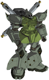 脳から発信される電気信号を、モビルスーツの駆動系に直接伝達して機体制御を行うシステム「リユース・P・デバイス」の実験機。リビング・デッド師団に所属する義肢兵たちが被験者となり戦闘データを収集、機体の開発に寄与していた。