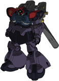 ジオン公国軍が一年戦争時に投入した主力MS。サンダーボルト宙域に投入されたタイプは、高機動を実現する大型ランドセルの装備とプロペラントタンクの追加に加え、デブリよけのシーリング処理や膝部装甲にもショックアブソーバーが設けられている。このほか、足底にはデブリに機体を固定するためのクローも備える。