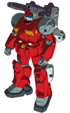 RXシリーズの一環として開発された中距離戦闘用のMS。ジムキャノンとともに、フルアーマー・ガンダムを最前線に送り届ける盾(支援機)として作戦に参加。デブリよけの関節部シーリング処理や頭部センサーの増設などの改修が行われているほか、大型ランドセルに低反動キャノン砲2門とスラスターを装備する。