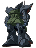 「ガンダム開発計画」の一環で開発された機体を改修して誕生した強襲用MS。オプション装備のシュツルム・ブースターによって機動力を高め、それによって強襲戦闘を成立させるというコンセプトに基づいて設計されている。裏取引によってシーマ艦隊に密かに譲渡された。