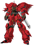 真紅に染められたフル・フロンタルの乗機で、「袖付き」を象徴する機体。元々はサイコフレームの実験機としてAE社が開発したものである。紛争末期には大型MAネオ・ジオングのコア・ユニットとして転用されている。