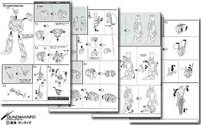 ▲組み立てたらさっそくデストロイ(NT-D)モードに“変身”させてみよう。変形行程の解説だけでなんと4ページ! 緻密な変形機構に圧倒される。もはや1/100のPG(パーフェクトグレード)といった趣だ。