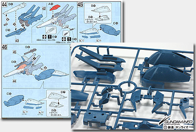 ▲組み立て説明書よりB.W.S.の組み立て説明と主なパーツ。特徴的なデザインの部分も一体成形された大型のパーツで構成されているので、B.W.S.のパーツ数は意外に少ない。