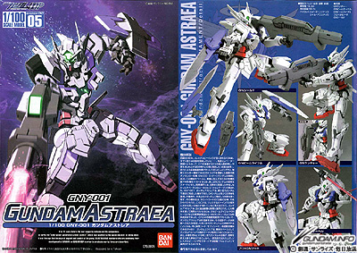 「1/100 ガンダムアストレア」は、Oガンダムとエクシアの特徴をあわせ持つそのデザインを忠実に立体化している。更にアストレアのメカデザイナーである海老川兼武氏による開発用画稿を元に、機体各部にモールドが施され、肩部や一部の武装は内部構造まで再現されるなど、まさしく「MSメカデザイナーがアレンジを加えたスペシャルモデル」となっている。スタイルだけでなく、新構造を取り入れた肩関節によりポージングの自由度も増している。またアストレアはガンダムの追加武装の開発に使用されたという設定通り、付属の武装は本体各部のコネクタに接続が可能となっている。
