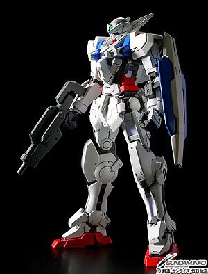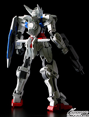 ▲この角度からだとGNビームライフル、GNシールドが腕部のコネクタに接続されているのが見て取れる。