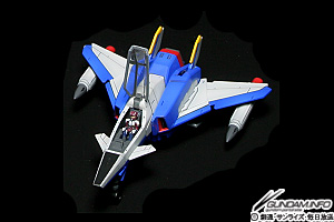 ▲コアブロックへの完全変形が可能なコアスプレンダー。このサイズで変形するだけでなくコックピットのキャノピーまで開閉する! もちろんシンが座ってます。