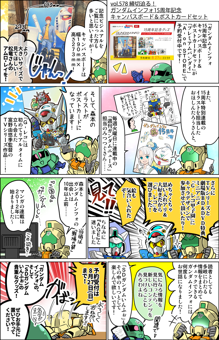 森本がーにゃのSDガンダムいんふぉ vol.578「締切迫る!ガンダムインフォ15周年記念キャンバスボード&ポストカードセット」