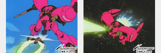 両肩のショット・クローは、射出して有線誘導によるオールレンジ攻撃が可能。ビーム・キャノンを内蔵する他、ハサミのように使うこともできる。ビーム・シールドの取り付け位置は、試作機と量産機では異なっている。