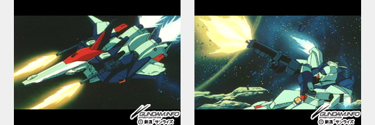 ネオ・ジオン軍総帥シャア・アズナブルのサザビーと激しく斬り結ぶアムロのリ・ガズィ。ロンド・ベルのエース機として奮迅の活躍を見せた、Zガンダムの後継機であった。