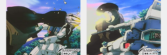 水陸両用という特性を活かし、水中に潜んで不意打ちを仕掛けたアッガイ。敏捷性にすぐれるのみならず、格闘戦におけるパワーもあなどれないものがあった。たとえ片腕になっても、陸戦型ガンダムを撃破寸前まで追いつめたのであった。