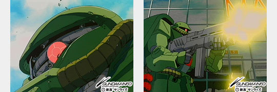 サイド6のコロニー内で試作テスト中だったガンダムNT-1と刃を交えるザクII改。ヒート・ホークのみでガンダムを追いつめ、相討ちに持ち込んだ。地球連邦軍のエース機を粉砕し、見事な戦果をあげたのであった。