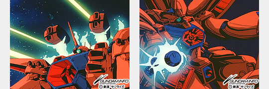 両肩、胸部、腰など各部にメガ粒子砲を装備。マニピュレーターにもメガ粒子砲を内蔵しているため、独特の形状のビーム・サーベルで敵を攻撃する。