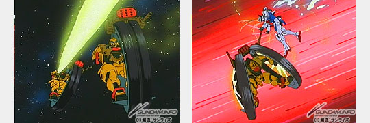 ザンスカール帝国軍の特徴とも言えるタイヤ型メカ、アインラッド。この支援メカとの絶妙なコンビネーションはモビルスーツの戦法を一変させ、リガ・ミリティアとの戦いに大きな衝撃を与えた。ゲドラフは、その先駆けとなって、戦場を蹂躙していったのであった。