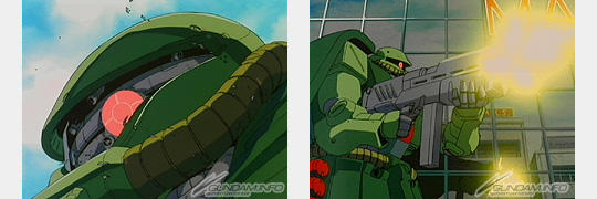 サイド6のコロニー内で試作テスト中だったガンダムNT-1と刃を交えるザクII改。ヒート・ホークのみでガンダムを追いつめ、相討ちに持ち込んだ。地球連邦軍のエース機を粉砕し、見事な戦果をあげたのであった。