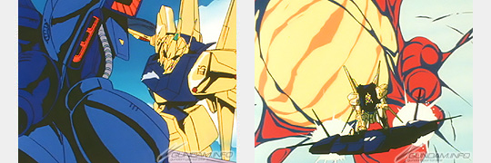 戦闘力においては、Ζガンダムに決してひけを取らない百式。チームの中堅的な位置づけで、ネオ・ジオン軍のモビルスーツを、実力で排除していった。