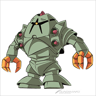最大級の水陸両用MSで、前後対象の形状も大きな特徴。北米キャリフォルニアの技師は「ザクの数倍のジャンプ力を持つ」と評する。メイン・パイロットはマッド・アングラー隊のボラスキニフ。偵察部隊の先鋒をつとめ、連邦軍本部ジャブローの正確な位置を発見。垂直・水平とメガ粒子砲を発射可能で、移動砲台のようでもあった。