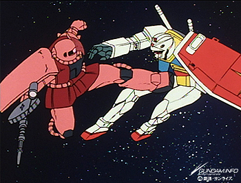 パ プア補給艦自体が老朽化しているという設定がおもしろいが、ガデム艦長の乗るザクもまた旧式である。いわゆる動力パイプを装着していない簡素なザクで、後 にファンには「旧ザク」の愛称で呼ばれるようになる。やられメカのザクを量産兵器として扱ったことがガンダムのエポックメイキングな姿勢だったが、過去か ら現在へと至る機種の進化を提示することで、時間軸方向にも厚みがつけられているのだ。この時空間を横断する多層的・重層的な「厚み」こそが、「ガンダム らしさ」である。