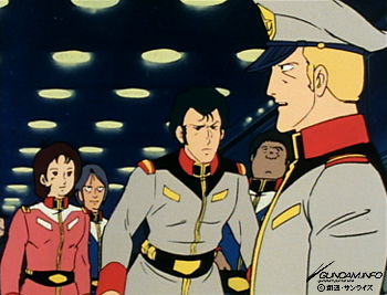 第 4話は、劇場版では大きく短縮・改変されていたエピソード。だが、実は後のガンダムシリーズ全体を考えると実に重要な位置づけにあるとわかる。単純な敵味 方構造でない社会の複雑さが『ガンダム』では多々描かれている。ここでは肥大化した地球連邦軍が組織として内部の官僚化を招いていることが、非常に入念に 描写されている。組織が大きくなると役割分担が細分化し、組織内部の問題を重視しがちなのは、古今東西変わらぬこと。しかも、ジオン公国からは「お目こぼ し」されているがゆえに、事なかれ主義に陥っている。本来所属すべき地球連邦軍でさえも味方ではないというホワイトベースの孤立感と漂泊感は、TVシリー ズの大河ドラマ感覚を底ざさえしているものであり、後の『逆襲のシャア』まで連綿と続くものでもある。