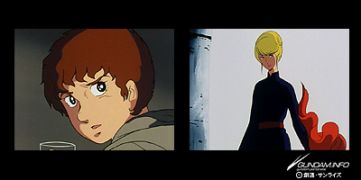 この回で注目して欲しいのは、アムロの回想に2度出てくるラルのセリフである。レストランで出逢った時、そして捨てゼリフを残して去る時、実際にラルが話した言葉とアムロの記憶で回想される言葉の内容は、かなり異なっている。こうしたところにも、主観的な現実感を重視する演出方針がよく反映されている。