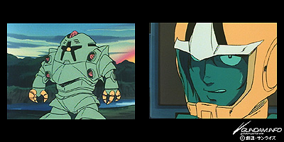 ミハルの情報をもとにシャアも南米に到着、北米キャルホルニアからの増援としてゾックを受領する。水陸両用、ジャンプ力はザクの数倍というが、モビルアーマー並みの巨体、前後対称という奇妙な印象に、懐疑的なシャアが面白い。