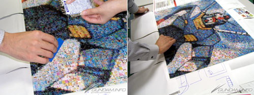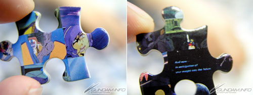 「一年戦争の記憶」と題されたこのパズルは、モザイク状にちりばめられた「機動戦士ガンダム」の名シーンで構成されており、完成させると一枚の大きな絵になります。