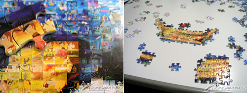 横72cm×縦49cmという巨大なサイズながら、細かな場面カットとジグソーパズル独特の繋ぎ目が、迫力と繊細さの調和した、不思議テイストを醸し出しています。