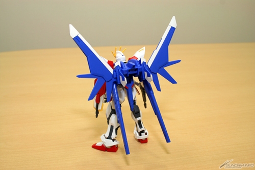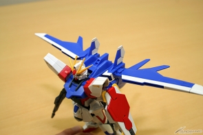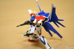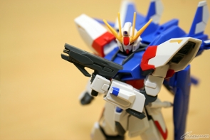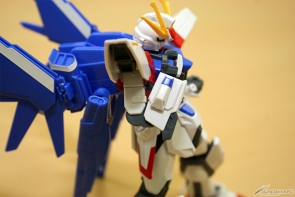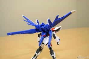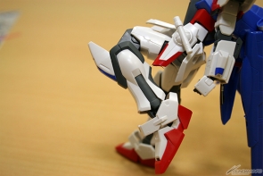 ▲合体して完成!「ストライクガンダム」をベースにした本体は、スッキリとしたシルエット。腕・脚をはじめ各部の可動域は広いので色々なポーズが楽しめるぞ!