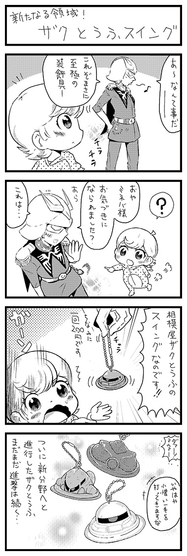 ザクとうふスイング 発売日: 2013年9月下旬 価格 : 200円(税込) 種類数: 5 話題の「ザクとうふ」がスイングとなって ガシャポン売り場に進軍開始! |